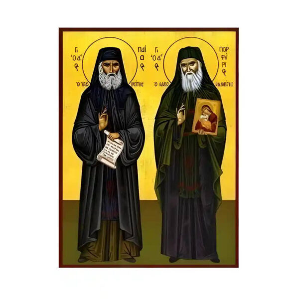 Εικόνα Ορθοδοξίας με περίγραμμα χρυσό σε ξύλο Φλαμουρίας με βάση Εικόνα Άγιοι Παΐσιος και Πορφύριος Χειροποίητη Ελληνορθόδοξη , Κρεμαστή πλάκα βυζαντινής τέχνης, χριστιανική τέχνη Διάσταση 45×35 cm (17,7 x 13,8 ίντσες) INTRAEK-6294671117