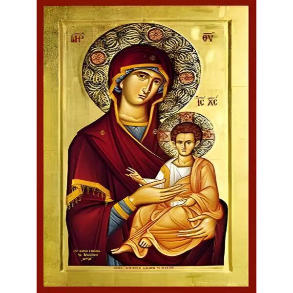 Εικόνα Ορθοδοξίας με περίγραμμα χρυσό σε ξύλο Φλαμουρίας με βάση Εικόνα ΠΑΝΑΓΙΑ ΜΕ ΧΡΙΣΤΟ, ΟΔΗΓΗΤΡΙΑ Χειροποίητη Ελληνορθόδοξη εικόνα του Ιησού Χριστού, Κρεμαστή πλάκα βυζαντινής τέχνης, χριστιανική τέχνη Διάσταση 15×11 cm (5,9×4,3 ίντσες) INTRAEK-337757864255