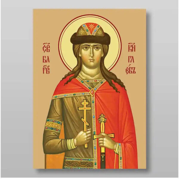 Εικόνα Ορθοδοξίας με περίγραμμα χρυσό σε ξύλο Φλαμουρίας με βάση Gleb, άγιος ευγενής πρίγκιπας μάρτυρας, Χειροποίητη Ελληνορθόδοξη , Κρεμαστή πλάκα βυζαντινής τέχνης, χριστιανική τέχνη Διάσταση 15×11 cm (5,9 x 4,3 ίντσες) INTRAEK-2763