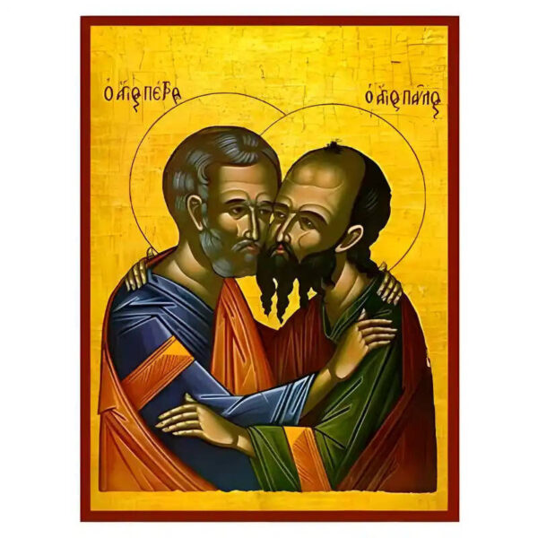 Εικόνα Ορθοδοξίας με περίγραμμα χρυσό σε ξύλο Φλαμουρίας με βάση Εικόνα Άγιοι Πέτρος και Παύλος Χειροποίητη Ελληνορθόδοξη , Κρεμαστή πλάκα βυζαντινής τέχνης, χριστιανική τέχνη Διάσταση 45×35 cm (17,7 x 13,8 ίντσες) INTRAEK-6294671108