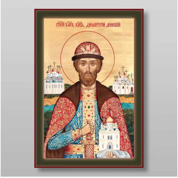 Εικόνα Ορθοδοξίας με περίγραμμα χρυσό σε ξύλο Φλαμουρίας με βάση Demetrius Donskoy ο άγιος ευγενής πρίγκιπας, Χειροποίητη Ελληνορθόδοξη , Κρεμαστή πλάκα βυζαντινής τέχνης, χριστιανική τέχνη Διάσταση 15×11 cm (5,9 x 4,3 ίντσες) INTRAEK-2758