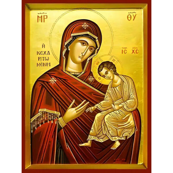Εικόνα Ορθοδοξίας με περίγραμμα χρυσό σε ξύλο Φλαμουρίας με βάση Εικόνα ΠΑΝΑΓΙΑ ΜΕ ΧΡΙΣΤΟ, ΟΔΗΓΗΤΡΙΑ, ΚΕΧΑΡΙΤΩΜΕΝΗ Χειροποίητη Ελληνορθόδοξη εικόνα του Ιησού Χριστού, Κρεμαστή πλάκα βυζαντινής τέχνης, χριστιανική τέχνη Διάσταση 15×11 cm (5,9×4,3 ίντσες) INTRAEK-337757864233
