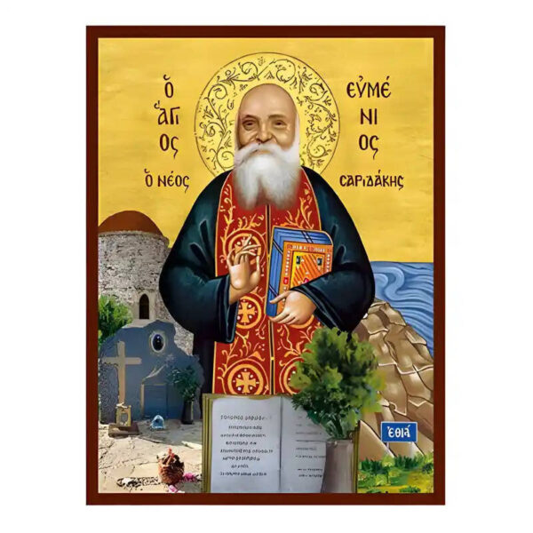 Βασικά Χαρακτηριστικά: – Σχέδιο: Κλασική βυζαντινή εικονογραφία με ζωηρό κόκκινο περίγραμμα – Υλικό: Ξύλο Μασίφ Φλαμουρία υψηλής αντοχής με προστατευτικό βερνίκι για ποιότητα που διαρκεί – Προέλευση: Χειροποίητο στην Ελλάδα – Σκοπός: Ιδανικό για γωνιές προσευχής, εκκλησίες, διακόσμηση σπιτιού ή ως δώρο με νόημα Διαθέσιμα μεγέθη: 10×7 cm (3,9 x 2,8 ίντσες) 15×11 cm (5,9 x 4,3 ίντσες) 21×15 cm (8,3 x 5,9 ίντσες) 26×20 cm (10,2 x 7,9 ίντσες) 40×30 cm (15,8 x 11,8 ίντσες) 45×35 cm (17,7 x 13,8 ίντσες) 50×40 cm (19,7 x 15,8 ίντσες)► Εικόνα του Αγίου Ευμενίου,