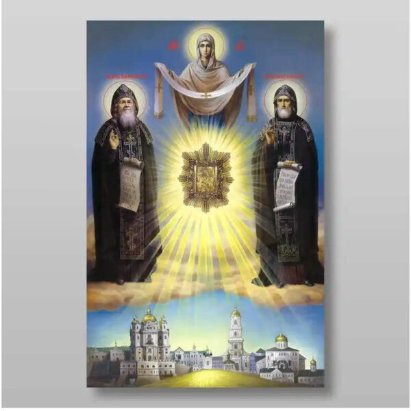 Εικόνα Ορθοδοξίας με περίγραμμα χρυσό σε ξύλο Φλαμουρίας με βάση Ιώβ και Αμφιλόχιος Ποτχαγιέφσκι, Χειροποίητη Ελληνορθόδοξη , Κρεμαστή πλάκα βυζαντινής τέχνης, χριστιανική τέχνη Διάσταση 15×11 cm (5,9 x 4,3 ίντσες) INTRAEK-2735