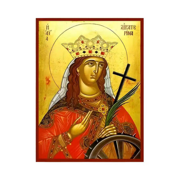 Εικόνα Ορθοδοξίας με περίγραμμα χρυσό σε ξύλο Φλαμουρίας με βάση Εικόνα Αγία Αικατερίνη Χειροποίητη Ελληνορθόδοξη , Κρεμαστή πλάκα βυζαντινής τέχνης, χριστιανική τέχνη Διάσταση 10×7 cm (3,9 x 2,8 ίντσες) INTRAEK-670705