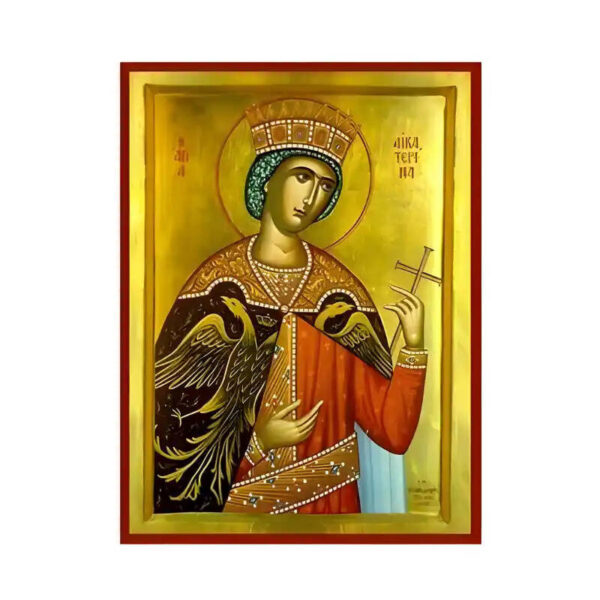 Εικόνα Ορθοδοξίας με περίγραμμα χρυσό σε ξύλο Φλαμουρίας με βάση Εικόνα Αγία Αικατερίνη Χειροποίητη Ελληνορθόδοξη , Κρεμαστή πλάκα βυζαντινής τέχνης, χριστιανική τέχνη Διάσταση 10×7 cm (3,9 x 2,8 ίντσες) INTRAEK-670702