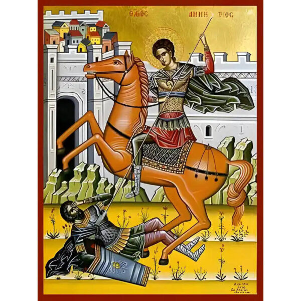 Εικόνα Ορθοδοξίας με περίγραμμα χρυσό σε ξύλο Φλαμουρίας με βάση Εικόνα ΑΓΙΟΣ ΔΗΜΗΤΡΙΟΣ Ο ΜΥΡΟΒΛΥΤΗΣ, ΕΦΙΠΠΟΣ Χειροποίητη Ελληνορθόδοξη εικόνα του Ιησού Χριστού, Κρεμαστή πλάκα βυζαντινής τέχνης, χριστιανική τέχνη Διάσταση 40×30 cm (10,2×7,9 ίντσες) INTRAEK-1447757864914