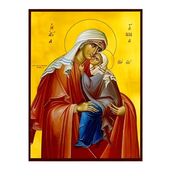 Βασικά Χαρακτηριστικά: – Σχέδιο: Κλασική βυζαντινή εικονογραφία με ζωηρό κόκκινο περίγραμμα – Υλικό: Ξύλο Μασίφ Φλαμουρία υψηλής αντοχής με προστατευτικό βερνίκι για ποιότητα που διαρκεί – Προέλευση: Χειροποίητο στην Ελλάδα – Σκοπός: Ιδανικό για γωνιές προσευχής, εκκλησίες, διακόσμηση σπιτιού ή ως δώρο με νόημα Διαθέσιμα μεγέθη: 10×7 cm (3,9 x 2,8 ίντσες) 15×11 cm (5,9 x 4,3 ίντσες) 21×15 cm (8,3 x 5,9 ίντσες) 26×20 cm (10,2 x 7,9 ίντσες) 40×30 cm (15,8 x 11,8 ίντσες) 45×35 cm (17,7 x 13,8 ίντσες) 50×40 cm (19,7 x 15,8 ίντσες)► Εικόνα της Αγίας  Άννας με την Παναγία, ξύλινη.  Χειροποίητη ξύλινη εικόνα, ειδικής επεξεργασίας  σε σκληρό Φλαμουριά Ξύλο Εικόνα Ορθόδοξης τέχνης, σκαλισμένη ή τυπωμένη σε ξύλο φλαμουριάς υψηλής ποιότητας. Η φυσική απαλότητα και ομοιομορφία του ξύλου τονίζει κάθε λεπτομέρεια του εικονίσματος, αναδεικνύοντας τη βαθιά πνευματικότητα και την ιερότητα της παράδοσης. Ιδανική για οικιακό εικονοστάσι, δώρο βάπτισης, γάμου ή αφιέρωμα σε ναό. Το ξύλο έχει υποστεί ειδική επεξεργασία για αντοχή και αισθητική αρμονία, κρατώντας ζωντανά τα χρώματα και τη μορφή του προσώπου του Αγίου. με ανεξίτηλα χρώματα σε λεπτό καμβά.