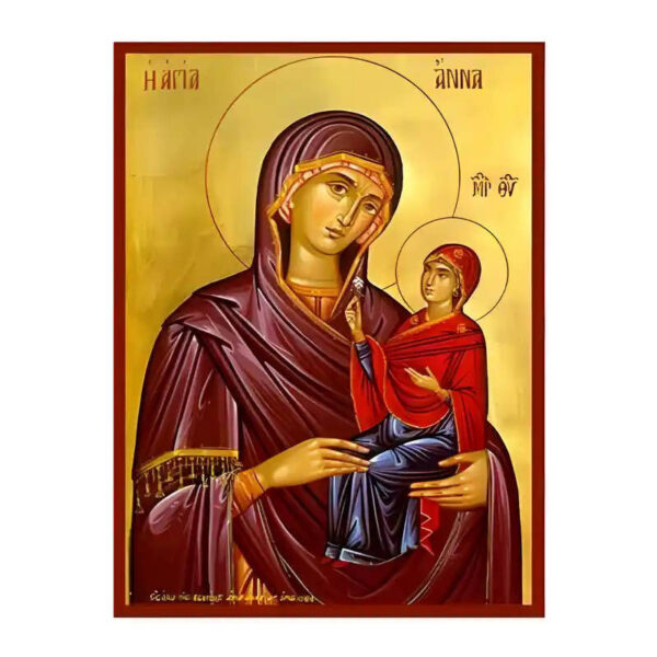 Βασικά Χαρακτηριστικά: – Σχέδιο: Κλασική βυζαντινή εικονογραφία με ζωηρό κόκκινο περίγραμμα – Υλικό: Ξύλο Μασίφ Φλαμουρία υψηλής αντοχής με προστατευτικό βερνίκι για ποιότητα που διαρκεί – Προέλευση: Χειροποίητο στην Ελλάδα – Σκοπός: Ιδανικό για γωνιές προσευχής, εκκλησίες, διακόσμηση σπιτιού ή ως δώρο με νόημα Διαθέσιμα μεγέθη: 10×7 cm (3,9 x 2,8 ίντσες) 15×11 cm (5,9 x 4,3 ίντσες) 21×15 cm (8,3 x 5,9 ίντσες) 26×20 cm (10,2 x 7,9 ίντσες) 40×30 cm (15,8 x 11,8 ίντσες) 45×35 cm (17,7 x 13,8 ίντσες) 50×40 cm (19,7 x 15,8 ίντσες)► Εικόνα της Αγίας Άννας με την Παναγία, ξύλινη. Χειροποίητη ξύλινη εικόνα, ειδικής επεξεργασίας σε σκληρό Φλαμουριά Ξύλο Εικόνα Ορθόδοξης τέχνης, σκαλισμένη ή τυπωμένη σε ξύλο φλαμουριάς υψηλής ποιότητας. Η φυσική απαλότητα και ομοιομορφία του ξύλου τονίζει κάθε λεπτομέρεια του εικονίσματος, αναδεικνύοντας τη βαθιά πνευματικότητα και την ιερότητα της παράδοσης. Ιδανική για οικιακό εικονοστάσι, δώρο βάπτισης, γάμου ή αφιέρωμα σε ναό. Το ξύλο έχει υποστεί ειδική επεξεργασία για αντοχή και αισθητική αρμονία, κρατώντας ζωντανά τα χρώματα και τη μορφή του προσώπου του Αγίου. με ανεξίτηλα χρώματα σε λεπτό καμβά.