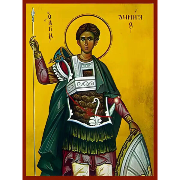 Εικόνα Ορθοδοξίας με περίγραμμα χρυσό σε ξύλο Φλαμουρίας με βάση Εικόνα ΑΓΙΟΣ ΔΗΜΗΤΡΙΟΣ, Ο ΜΥΡΟΒΛΥΤΗΣ Χειροποίητη Ελληνορθόδοξη εικόνα του Ιησού Χριστού, Κρεμαστή πλάκα βυζαντινής τέχνης, χριστιανική τέχνη Διάσταση 40×30 cm (10,2×7,9 ίντσες) INTRAEK-1447757864904