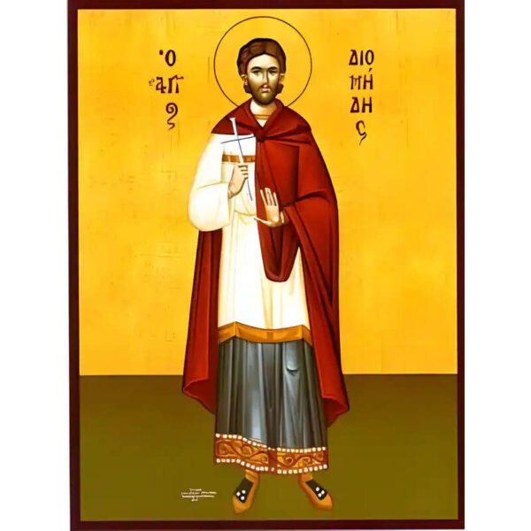 Εικόνα Ορθοδοξίας με περίγραμμα χρυσό σε ξύλο Φλαμουρίας με βάση Εικόνα ΑΓΙΟΣ ΔΙΟΜΗΔΗΣ ΤΑΡΣΟΥΣ Ο ΙΑΤΡΟΣ, ΜΑΡΤΥΣ, ΟΛΟΣΩΜΟΣ Χειροποίητη Ελληνορθόδοξη εικόνα του Ιησού Χριστού, Κρεμαστή πλάκα βυζαντινής τέχνης, χριστιανική τέχνη Διάσταση 40×30 cm (10,2×7,9 ίντσες) INTRAEK-1447757864899