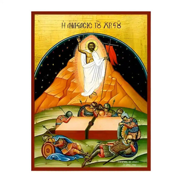Βασικά Χαρακτηριστικά: – Σχέδιο: Κλασική βυζαντινή εικονογραφία με ζωηρό κόκκινο περίγραμμα – Υλικό: Ξύλο Μασίφ Φλαμουρία υψηλής αντοχής με προστατευτικό βερνίκι για ποιότητα που διαρκεί – Προέλευση: Χειροποίητο στην Ελλάδα – Σκοπός: Ιδανικό για γωνιές προσευχής, εκκλησίες, διακόσμηση σπιτιού ή ως δώρο με νόημα Διαθέσιμα μεγέθη: 10×7 cm (3,9 x 2,8 ίντσες) 15×11 cm (5,9 x 4,3 ίντσες) 21×15 cm (8,3 x 5,9 ίντσες) 26×20 cm (10,2 x 7,9 ίντσες) 40×30 cm (15,8 x 11,8 ίντσες) 45×35 cm (17,7 x 13,8 ίντσες) 50×40 cm (19,7 x 15,8 ίντσες)► Εικόνα της Ανάστασης του Χριστού ξύλινη. Χειροποίητη ξύλινη εικόνα, ειδικής επεξεργασίας σε σκληρό Φλαμουριά Ξύλο Εικόνα Ορθόδοξης τέχνης, σκαλισμένη ή τυπωμένη σε ξύλο φλαμουριάς υψηλής ποιότητας. Η φυσική απαλότητα και ομοιομορφία του ξύλου τονίζει κάθε λεπτομέρεια του εικονίσματος, αναδεικνύοντας τη βαθιά πνευματικότητα και την ιερότητα της παράδοσης. Ιδανική για οικιακό εικονοστάσι, δώρο βάπτισης, γάμου ή αφιέρωμα σε ναό. Το ξύλο έχει υποστεί ειδική επεξεργασία για αντοχή και αισθητική αρμονία, κρατώντας ζωντανά τα χρώματα και τη μορφή του προσώπου του Αγίου. με ανεξίτηλα χρώματα σε λεπτό καμβά.