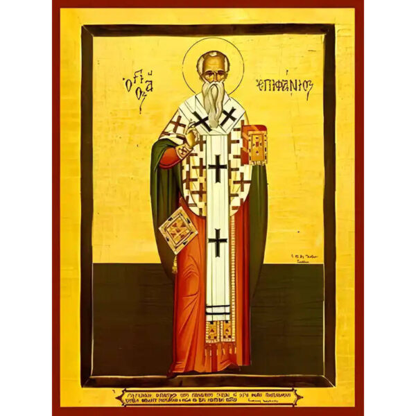 Εικόνα Ορθοδοξίας με περίγραμμα χρυσό σε ξύλο Φλαμουρίας με βάση Εικόνα ΑΓΙΟΣ ΕΠΙΦΑΝΙΟΣ, ΕΠΙΣΚΟΠΟΣ ΚΥΠΡΟΥ, ΟΛΟΣΩΜΟΣ Χειροποίητη Ελληνορθόδοξη εικόνα του Ιησού Χριστού, Κρεμαστή πλάκα βυζαντινής τέχνης, χριστιανική τέχνη Διάσταση 40×30 cm (10,2×7,9 ίντσες) INTRAEK-1447757864883