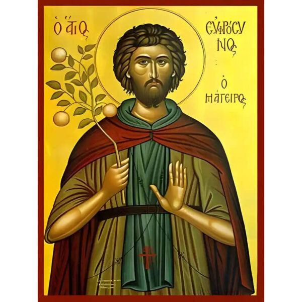 Εικόνα Ορθοδοξίας με περίγραμμα χρυσό σε ξύλο Φλαμουρίας με βάση Εικόνα ΑΓΙΟΣ ΕΥΦΡΟΣΥΝΟΣ Ο ΜΑΓΕΙΡΟΣ, ΑΛΕΞΑΝΔΡΕΙΑΣ Χειροποίητη Ελληνορθόδοξη εικόνα του Ιησού Χριστού, Κρεμαστή πλάκα βυζαντινής τέχνης, χριστιανική τέχνη Διάσταση 40×30 cm (10,2×7,9 ίντσες) INTRAEK-1447757864865