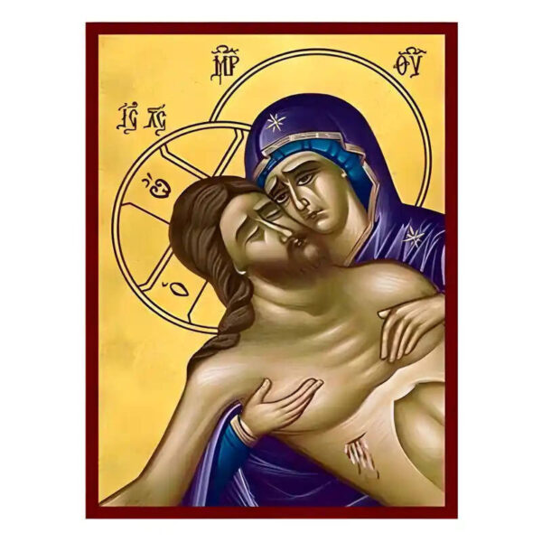 Βασικά Χαρακτηριστικά: – Σχέδιο: Κλασική βυζαντινή εικονογραφία με ζωηρό κόκκινο περίγραμμα – Υλικό: Ξύλο Μασίφ Φλαμουρία υψηλής αντοχής με προστατευτικό βερνίκι για ποιότητα που διαρκεί – Προέλευση: Χειροποίητο στην Ελλάδα – Σκοπός: Ιδανικό για γωνιές προσευχής, εκκλησίες, διακόσμηση σπιτιού ή ως δώρο με νόημα Διαθέσιμα μεγέθη: 10×7 cm (3,9 x 2,8 ίντσες) 15×11 cm (5,9 x 4,3 ίντσες) 21×15 cm (8,3 x 5,9 ίντσες) 26×20 cm (10,2 x 7,9 ίντσες) 40×30 cm (15,8 x 11,8 ίντσες) 45×35 cm (17,7 x 13,8 ίντσες) 50×40 cm (19,7 x 15,8 ίντσες)► Εικόνα των Εγκωμίων Μεγάλης Παρασκευής, ξύλινη. Χειροποίητη ξύλινη εικόνα, ειδικής επεξεργασίας σε σκληρό Φλαμουριά Ξύλο Εικόνα Ορθόδοξης τέχνης, σκαλισμένη ή τυπωμένη σε ξύλο φλαμουριάς υψηλής ποιότητας. Η φυσική απαλότητα και ομοιομορφία του ξύλου τονίζει κάθε λεπτομέρεια του εικονίσματος, αναδεικνύοντας τη βαθιά πνευματικότητα και την ιερότητα της παράδοσης. Ιδανική για οικιακό εικονοστάσι, δώρο βάπτισης, γάμου ή αφιέρωμα σε ναό. Το ξύλο έχει υποστεί ειδική επεξεργασία για αντοχή και αισθητική αρμονία, κρατώντας ζωντανά τα χρώματα και τη μορφή του προσώπου του Αγίου. με ανεξίτηλα χρώματα σε λεπτό καμβά.