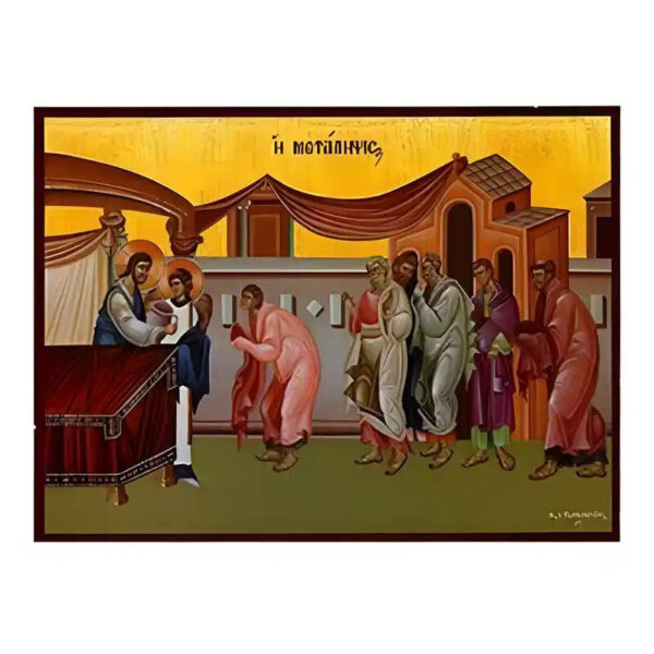 Βασικά Χαρακτηριστικά: – Σχέδιο: Κλασική βυζαντινή εικονογραφία με ζωηρό κόκκινο περίγραμμα – Υλικό: Ξύλο Μασίφ Φλαμουρία υψηλής αντοχής με προστατευτικό βερνίκι για ποιότητα που διαρκεί – Προέλευση: Χειροποίητο στην Ελλάδα – Σκοπός: Ιδανικό για γωνιές προσευχής, εκκλησίες, διακόσμηση σπιτιού ή ως δώρο με νόημα Διαθέσιμα μεγέθη: 10×7 cm (3,9 x 2,8 ίντσες) 15×11 cm (5,9 x 4,3 ίντσες) 21×15 cm (8,3 x 5,9 ίντσες) 26×20 cm (10,2 x 7,9 ίντσες) 40×30 cm (15,8 x 11,8 ίντσες) 45×35 cm (17,7 x 13,8 ίντσες) 50×40 cm (19,7 x 15,8 ίντσες)► Εικόνα της Θείας Μετάληψης του Οίνου, ξύλινη. Χειροποίητη ξύλινη εικόνα, ειδικής επεξεργασίας σε σκληρό Φλαμουριά Ξύλο Εικόνα Ορθόδοξης τέχνης, σκαλισμένη ή τυπωμένη σε ξύλο φλαμουριάς υψηλής ποιότητας. Η φυσική απαλότητα και ομοιομορφία του ξύλου τονίζει κάθε λεπτομέρεια του εικονίσματος, αναδεικνύοντας τη βαθιά πνευματικότητα και την ιερότητα της παράδοσης. Ιδανική για οικιακό εικονοστάσι, δώρο βάπτισης, γάμου ή αφιέρωμα σε ναό. Το ξύλο έχει υποστεί ειδική επεξεργασία για αντοχή και αισθητική αρμονία, κρατώντας ζωντανά τα χρώματα και τη μορφή του προσώπου του Αγίου. με ανεξίτηλα χρώματα σε λεπτό καμβά.