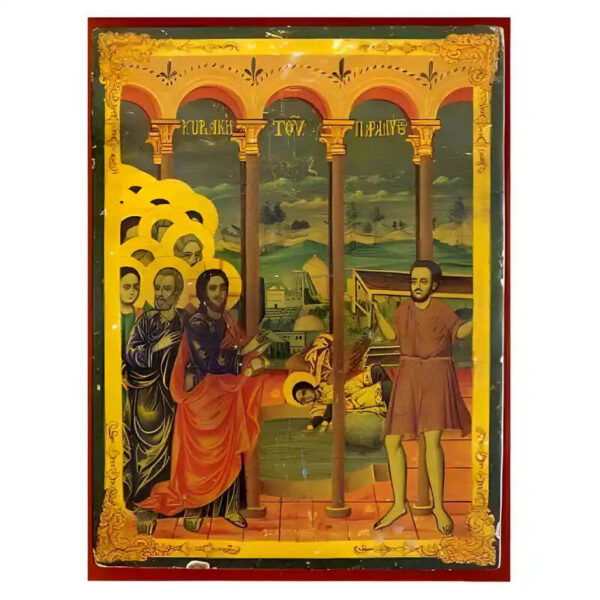 Εικόνα Ορθοδοξίας με περίγραμμα χρυσό σε ξύλο Φλαμουρίας με βάση Εικόνα Κυριακή του Παραλύτου Χειροποίητη Ελληνορθόδοξη , Κρεμαστή πλάκα βυζαντινής τέχνης, χριστιανική τέχνη Διάσταση 45×35 cm (17,7 x 13,8 ίντσες) INTRAEK-6294670977