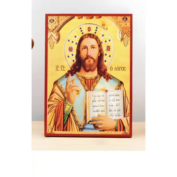 Εικόνα Ορθοδοξίας με περίγραμμα χρυσό σε ξύλο Φλαμουρίας με βάση Ο Ιησούς Χριστός Ευλογία – Στην αρχή ήταν ο Κόλπος, Ξύλινη Χειροποίητη Εικόνα Ελληνικής Premium Βυζαντινού Στυλ τοίχου Κρεμασμένη σε Πλάκα Θρησκευτικό Χειροποίητη Ελληνορθόδοξη εικόνα του Ιησού Χριστού, Κρεμαστή πλάκα βυζαντινής τέχνης, χριστιανική τέχνη Διάσταση 26×20 cm (10,2 x 7,9 ίντσες) INTRAEK-22611188