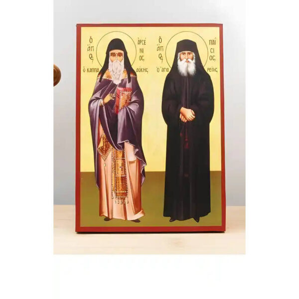 Εικόνα Ορθοδοξίας με περίγραμμα χρυσό σε ξύλο Φλαμουρίας με βάση Άγιοι Παΐσιος ο Αθωνίτης και Αρσένιος ο Καππαδόκης, Ξύλινη Χειροποίητη Εικόνα Ελληνικής Κορυφαίας Βυζαντινής Στυλ Κρεμασμένη σε ξύλινη πλάκα Χειροποίητη Ελληνορθόδοξη εικόνα του Ιησού Χριστού, Κρεμαστή πλάκα βυζαντινής τέχνης, χριστιανική τέχνη Διάσταση 40×30 cm (15,8 x 11,8 ίντσες) INTRAEK-2111217