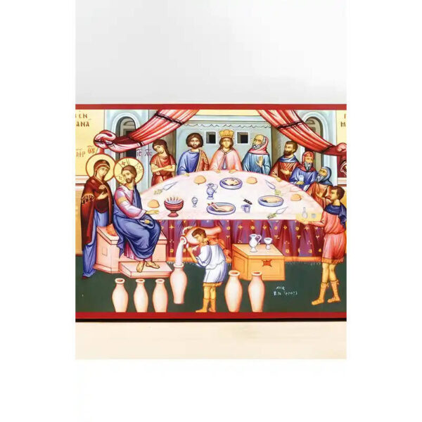 Εικόνα Ορθοδοξίας με περίγραμμα χρυσό σε ξύλο Φλαμουρίας με βάση Γάμος Ιησούς Χριστός στην Κανά, Ξύλινη Χειροποίητη Εικόνα Ελληνικού Premium Βυζαντινού Στυλ τοίχου που κρεμιέται σε ξύλινη πλάκα Ορθόδοξο θρησκευτικό θέμα Χειροποίητη Ελληνορθόδοξη εικόνα του Ιησού Χριστού, Κρεμαστή πλάκα βυζαντινής τέχνης, χριστιανική τέχνη Διάσταση 40×30 cm (15,8 x 11,8 ίντσες) INTRAEK-2111185