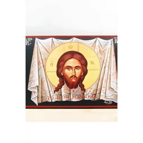 Εικόνα Ορθοδοξίας με περίγραμμα χρυσό σε ξύλο Φλαμουρίας με βάση Η Ιερά Χαρτοπετσέτα του Ιησού Χριστού, Ξύλινη Χειροποίητη Εικόνα Ελληνικού Premium Βυζαντινού Στυλ τοίχου Κρεμασμένη σε Ξύλινη Πλάκα Θρησκευτικό Χειροποίητη Ελληνορθόδοξη εικόνα του Ιησού Χριστού, Κρεμαστή πλάκα βυζαντινής τέχνης, χριστιανική τέχνη Διάσταση 40×30 cm (15,8 x 11,8 ίντσες) INTRAEK-2111179