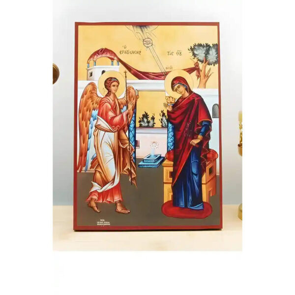 Εικόνα Ορθοδοξίας με περίγραμμα χρυσό σε ξύλο Φλαμουρίας με βάση Ο Ευαγγελισμός της Θεοτόκου, Ξύλινη Χειροποίητη Εικόνα Ελληνικού Premium Βυζαντινού Στυλ Κρεμαστή σε ξύλινη πλάκα Θρησκευτικό θέμα Χειροποίητη Ελληνορθόδοξη εικόνα του Ιησού Χριστού, Κρεμαστή πλάκα βυζαντινής τέχνης, χριστιανική τέχνη Διάσταση 40×30 cm (15,8 x 11,8 ίντσες) INTRAEK-2111039