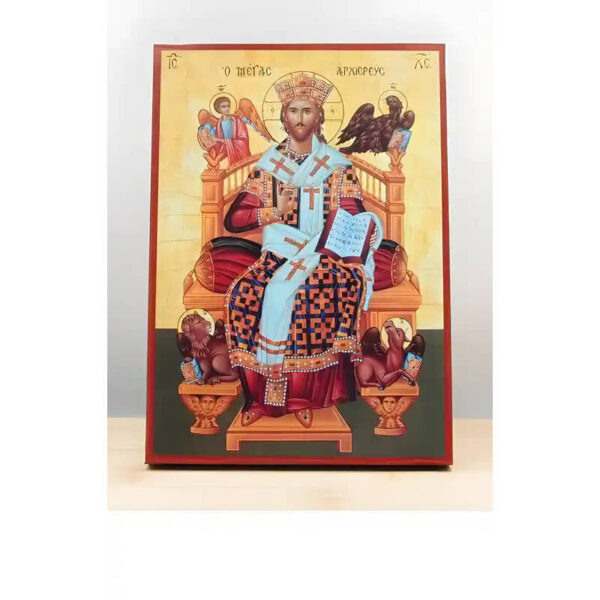 Εικόνα Ορθοδοξίας με περίγραμμα χρυσό σε ξύλο Φλαμουρίας με βάση Ιησούς Χριστός ο Μέγας Αρχιερέας, Ξύλινη Χειροποίητη Εικόνα Ελληνικού Βυζαντινού Στυλ τοίχου Κρεμασμένη σε ξύλινη πλάκα Θρησκευτικό θέμα Χειροποίητη Ελληνορθόδοξη εικόνα του Ιησού Χριστού, Κρεμαστή πλάκα βυζαντινής τέχνης, χριστιανική τέχνη Διάσταση 40×30 cm (15,8 x 11,8 ίντσες) INTRAEK-2111020