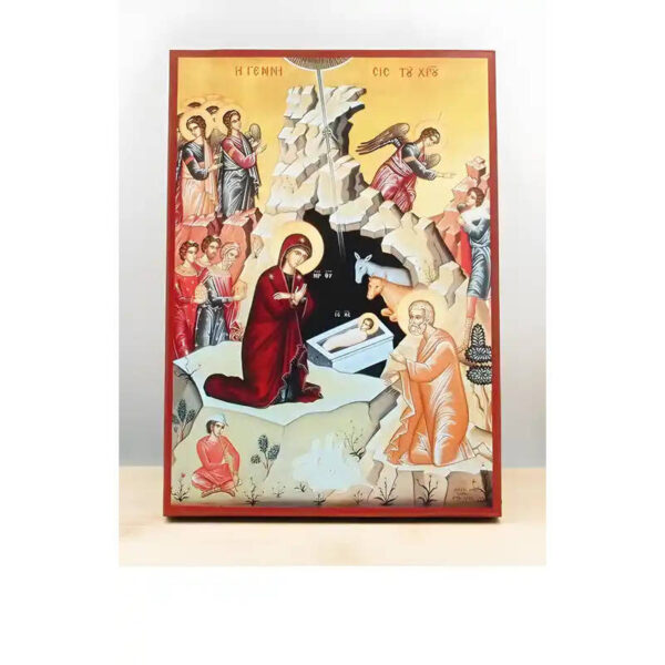 Εικόνα Ορθοδοξίας με περίγραμμα χρυσό σε ξύλο Φλαμουρίας με βάση Γένεσις του Ιησού Χριστού, Ξύλινη Χειροποίητη Εικόνα Ελληνικού Premium Βυζαντινού Στυλ Κρεμασμένο σε ξύλινη πλάκα Ορθόδοξο Θρησκευτικό Θέμα Χειροποίητη Ελληνορθόδοξη εικόνα του Ιησού Χριστού, Κρεμαστή πλάκα βυζαντινής τέχνης, χριστιανική τέχνη Διάσταση 40×30 cm (15,8 x 11,8 ίντσες) INTRAEK-2110995