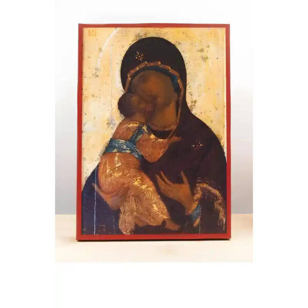Εικόνα Ορθοδοξίας με περίγραμμα χρυσό σε ξύλο Φλαμουρίας με βάση Παναγία του Βλαδίμηρου με τον Ιησού Παλιάς τεχνοτροπίας, Ξύλινη Χειροποίητη Εικόνα Ελληνικής Κορυφαίας Βυζαντινής Στυλ Κρεμασμένη σε ξύλινη πλάκα Θρησκευτικό Χειροποίητη Ελληνορθόδοξη εικόνα του Ιησού Χριστού, Κρεμαστή πλάκα βυζαντινής τέχνης, χριστιανική τέχνη Διάσταση 40×30 cm (15,8 x 11,8 ίντσες) INTRAEK-2110979