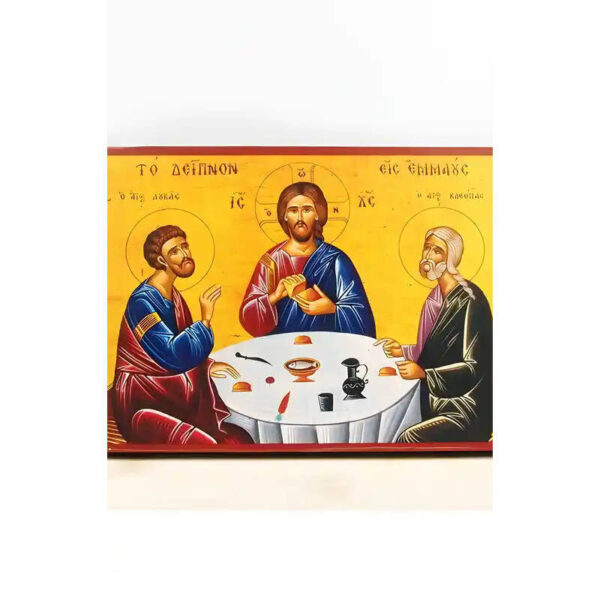 Εικόνα Ορθοδοξίας με περίγραμμα χρυσό σε ξύλο Φλαμουρίας με βάση Ιησούς Χριστός Το Δείπνο στο Εμμαούς, Ξύλινη Χειροποίητη Εικόνα Ελληνικού Βυζαντινού Στυλ τοίχου Κρεμασμένη σε ξύλινη πλάκα Ορθόδοξο θρησκευτικό θέμα Χειροποίητη Ελληνορθόδοξη εικόνα του Ιησού Χριστού, Κρεμαστή πλάκα βυζαντινής τέχνης, χριστιανική τέχνη Διάσταση 40×30 cm (15,8 x 11,8 ίντσες) INTRAEK-2110975
