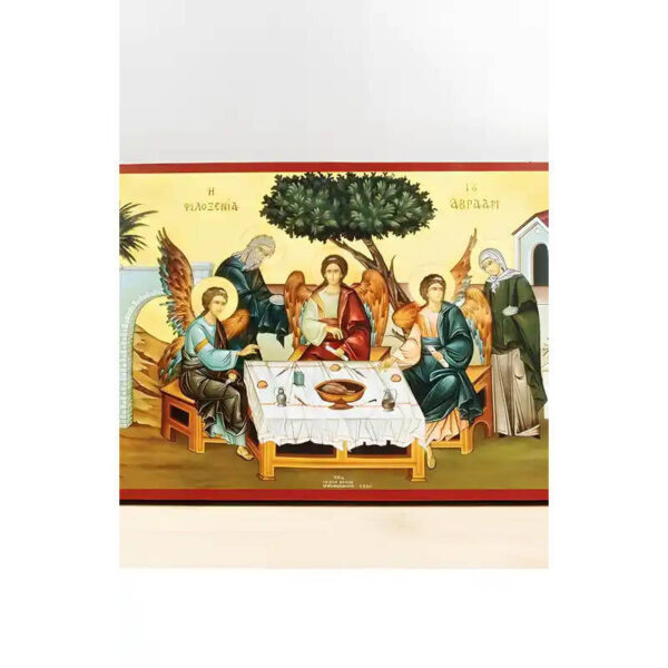 Εικόνα Ορθοδοξίας με περίγραμμα χρυσό σε ξύλο Φλαμουρίας με βάση Η Φιλοξενία του Αβραάμ και της Σάρας, Ξύλινη Χειροποίητη Εικόνα Ελληνικού Βυζαντινού Στυλ τοίχου που κρέμεται σε ξύλινη πλάκα Θρησκευτικό θέμα Χειροποίητη Ελληνορθόδοξη εικόνα του Ιησού Χριστού, Κρεμαστή πλάκα βυζαντινής τέχνης, χριστιανική τέχνη Διάσταση 40×30 cm (15,8 x 11,8 ίντσες) INTRAEK-2110966