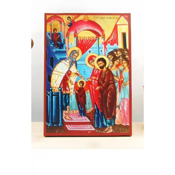 Εικόνα Ορθοδοξίας με περίγραμμα χρυσό σε ξύλο Φλαμουρίας με βάση Η είσοδος της Παναγίας στο Ναό, Ξύλινη Χειροποίητη Εικόνα Ελληνικού Premium Βυζαντινού Στυλ Κρεμαστή σε Ξυλόπλακα Θρησκευτικό Θέμα Χειροποίητη Ελληνορθόδοξη εικόνα του Ιησού Χριστού, Κρεμαστή πλάκα βυζαντινής τέχνης, χριστιανική τέχνη Διάσταση 40×30 cm (15,8 x 11,8 ίντσες) INTRAEK-2110936