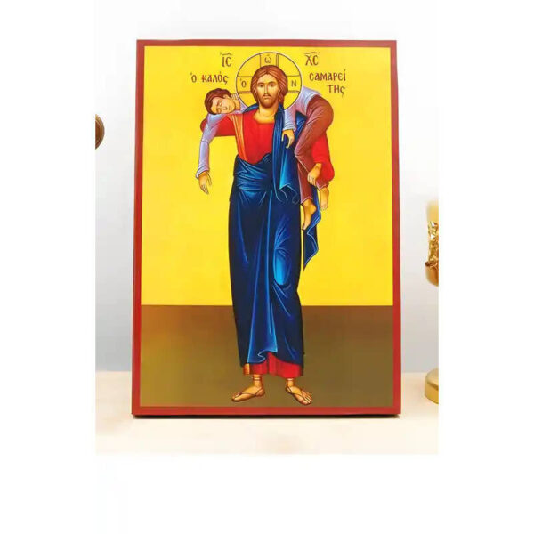 Εικόνα Ορθοδοξίας με περίγραμμα χρυσό σε ξύλο Φλαμουρίας με βάση Ιησούς Χριστός ο καλός Σαμαρείτης, Ξύλινη Χειροποίητη Εικόνα Ελληνικού Premium Βυζαντινού Στυλ Κρεμαστή σε ξύλινη πλάκα Θρησκευτικό θέμα Χειροποίητη Ελληνορθόδοξη εικόνα του Ιησού Χριστού, Κρεμαστή πλάκα βυζαντινής τέχνης, χριστιανική τέχνη Διάσταση 40×30 cm (15,8 x 11,8 ίντσες) INTRAEK-2110840