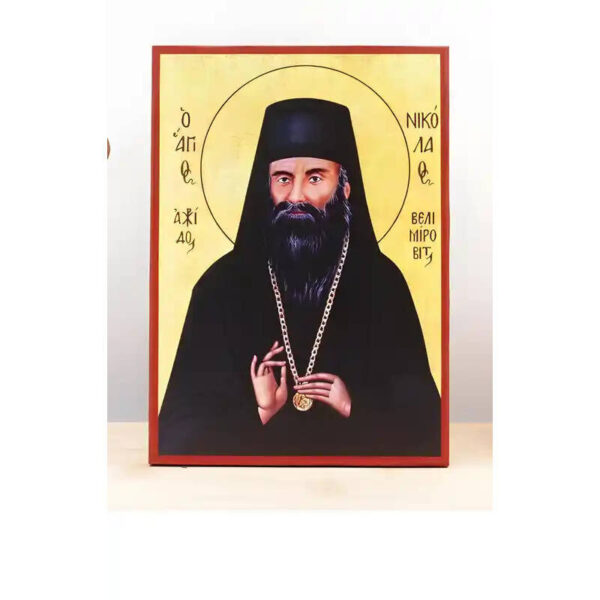 Εικόνα Ορθοδοξίας με περίγραμμα χρυσό σε ξύλο Φλαμουρίας με βάση Άγιος Νικόλαος “Νικόλαος” Βελιμίροβιτς της Σερβίας, Ξύλινη Χειροποίητη Εικόνα Ελληνικού Premium Βυζαντινού Στυλ Κρεμασμένη σε ξύλινη πλάκα Χειροποίητη Ελληνορθόδοξη εικόνα του Ιησού Χριστού, Κρεμαστή πλάκα βυζαντινής τέχνης, χριστιανική τέχνη Διάσταση 40×30 cm (15,8 x 11,8 ίντσες) INTRAEK-2110824