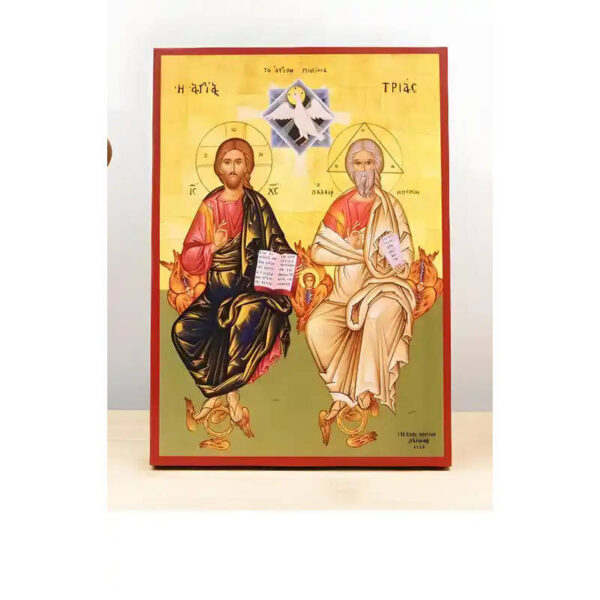 Εικόνα Ορθοδοξίας με περίγραμμα χρυσό σε ξύλο Φλαμουρίας με βάση Αγίας Τριάδας Ανθρωπομορφική, Ξύλινη Χειροποίητη Εικόνα Ο τοίχος Ελληνικού Premium Βυζαντινού Στυλ Κρεμασμένος σε Ξύλινη Πλάκα Θρησκευτικό Θέμα Χειροποίητη Ελληνορθόδοξη εικόνα του Ιησού Χριστού, Κρεμαστή πλάκα βυζαντινής τέχνης, χριστιανική τέχνη 45×35 cm (17,7 x 13,8 ίντσες) INTRAEK-342111213