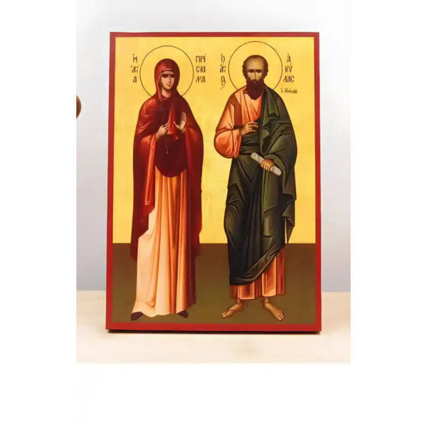 Εικόνα Ορθοδοξίας με περίγραμμα χρυσό σε ξύλο Φλαμουρίας με βάση Saints Priscilla and Aquila, Ξύλινη Χειροποίητη Εικόνα Ελληνικού Premium Βυζαντινού Στυλ Κρεμασμένη σε ξύλινη πλάκα Χειροποίητη Ελληνορθόδοξη εικόνα του Ιησού Χριστού, Κρεμαστή πλάκα βυζαντινής τέχνης, χριστιανική τέχνη 45×35 cm (17,7 x 13,8 ίντσες) INTRAEK-342111206