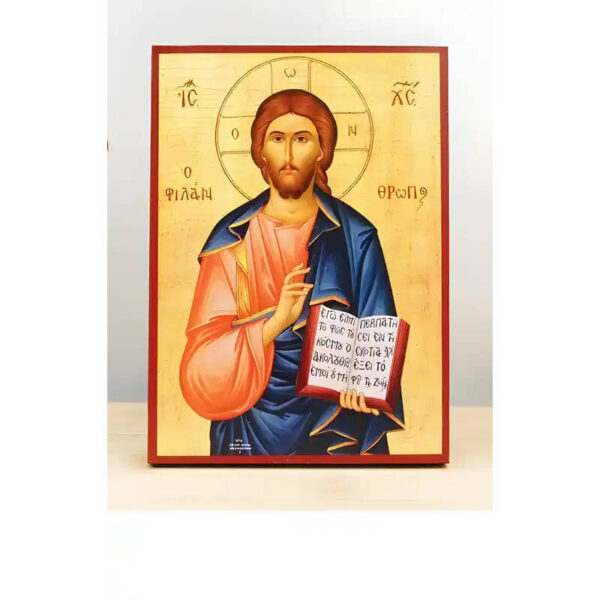 Εικόνα Ορθοδοξίας με περίγραμμα χρυσό σε ξύλο Φλαμουρίας με βάση Ιησούς Χριστός ο Μέγας Φιλάνθρωπος, Ξύλινη Χειροποίητη Εικόνα Ελληνικού Βυζαντινού Στυλ Κρεμασμένο σε ξύλινη πλάκα Θρησκευτικό θέμα Χειροποίητη Ελληνορθόδοξη εικόνα του Ιησού Χριστού, Κρεμαστή πλάκα βυζαντινής τέχνης, χριστιανική τέχνη 45×35 cm (17,7 x 13,8 ίντσες) INTRAEK-342111202
