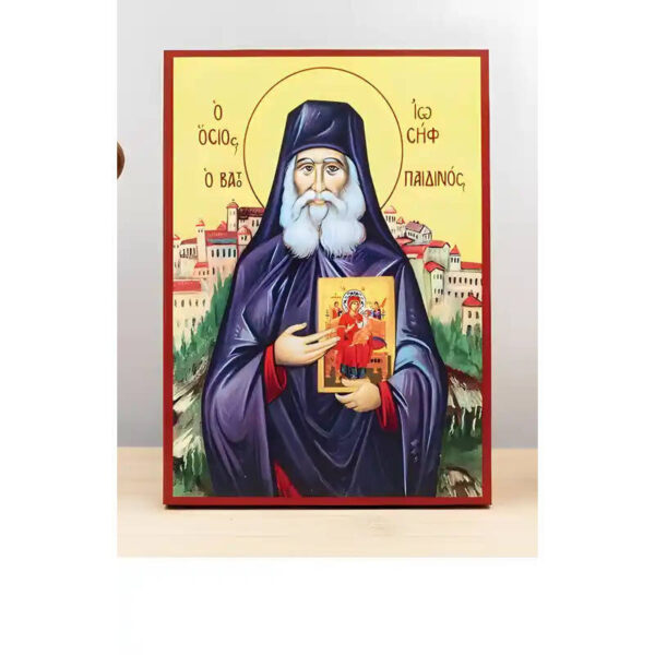 Εικόνα Ορθοδοξίας με περίγραμμα χρυσό σε ξύλο Φλαμουρίας με βάση Άγιος Ιωσήφ Βατοπαιδίου, Ξύλινη Χειροποίητη Εικόνα Ελληνικού Βυζαντινού Στυλ Κρεμασμένη σε ξύλινη πλάκα Χειροποίητη Ελληνορθόδοξη εικόνα του Ιησού Χριστού, Κρεμαστή πλάκα βυζαντινής τέχνης, χριστιανική τέχνη 45×35 cm (17,7 x 13,8 ίντσες) INTRAEK-342111192