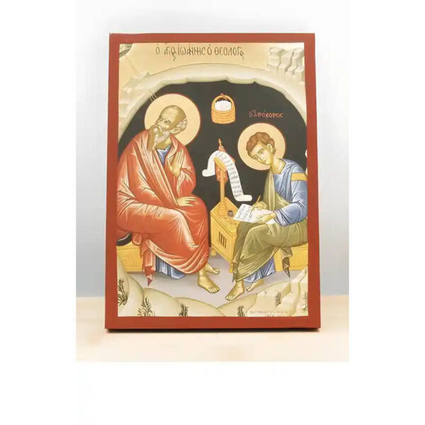 Εικόνα Ορθοδοξίας με περίγραμμα χρυσό σε ξύλο Φλαμουρίας με βάση Ο Άγιος Ιωάννης ο Θεολόγος στο Σπήλαιο της Αποκάλυψης, Ξύλινη Χειροποίητη Εικόνα με Ψηφιακή Εκτύπωση Ελληνικής Βυζαντινής Τεχνολογίας Χειροποίητη Ελληνορθόδοξη εικόνα του Ιησού Χριστού, Κρεμαστή πλάκα βυζαντινής τέχνης, χριστιανική τέχνη 45×35 cm (17,7 x 13,8 ίντσες) INTRAEK-342111173