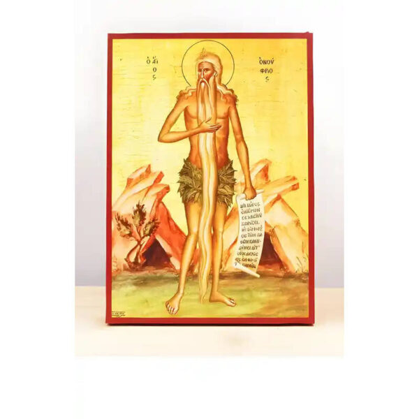 Εικόνα Ορθοδοξίας με περίγραμμα χρυσό σε ξύλο Φλαμουρίας με βάση Άγιος Ονούφριος ο Έρημος Πατέρας, Ξύλινη Χειροποίητη Εικόνα Ελληνικού Βυζαντινού Στυλ Κρεμασμένη σε ξύλινη πλάκα Χειροποίητη Ελληνορθόδοξη εικόνα του Ιησού Χριστού, Κρεμαστή πλάκα βυζαντινής τέχνης, χριστιανική τέχνη 45×35 cm (17,7 x 13,8 ίντσες) INTRAEK-342111166