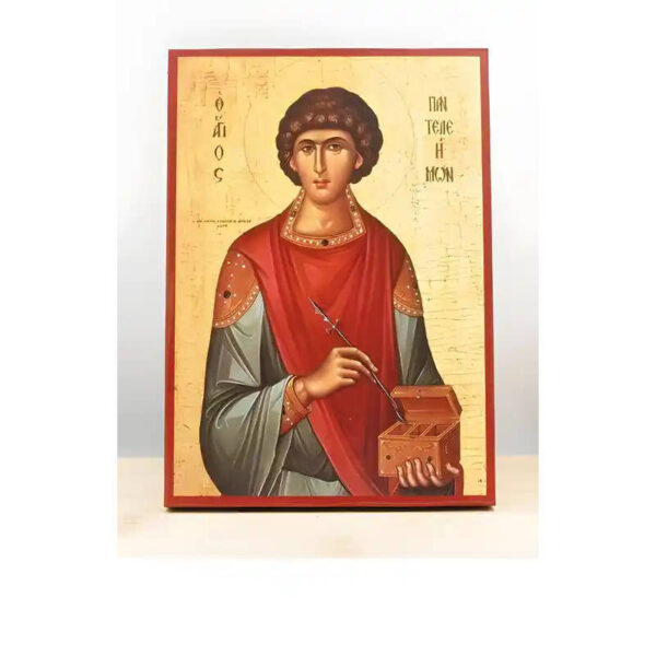 Εικόνα Ορθοδοξίας με περίγραμμα χρυσό σε ξύλο Φλαμουρίας με βάση Άγιος Παντελεήμονας ο Μεγαλομάρτυς, Ξύλινη Χειροποίητη Εικόνα Ελληνικού Βυζαντινού Στυλ Κρεμαστή σε ξύλινη πλάκα Χειροποίητη Ελληνορθόδοξη εικόνα του Ιησού Χριστού, Κρεμαστή πλάκα βυζαντινής τέχνης, χριστιανική τέχνη 45×35 cm (17,7 x 13,8 ίντσες) INTRAEK-342111165