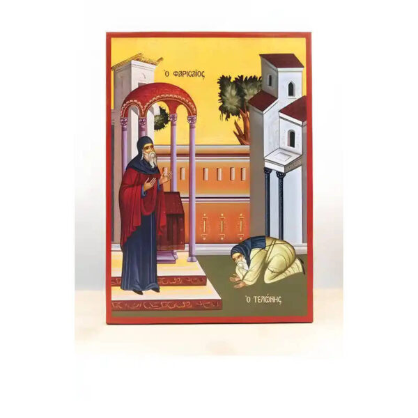 Εικόνα Ορθοδοξίας με περίγραμμα χρυσό σε ξύλο Φλαμουρίας με βάση Κυριακή του Τελώνη και του Φαρισαίου, Ξύλινη Χειροποίητη Εικόνα Ελληνικού Βυζαντινού Στυλ Κρεμασμένη σε ξύλινη πλάκα Χειροποίητη Ελληνορθόδοξη εικόνα του Ιησού Χριστού, Κρεμαστή πλάκα βυζαντινής τέχνης, χριστιανική τέχνη 45×35 cm (17,7 x 13,8 ίντσες) INTRAEK-342111156