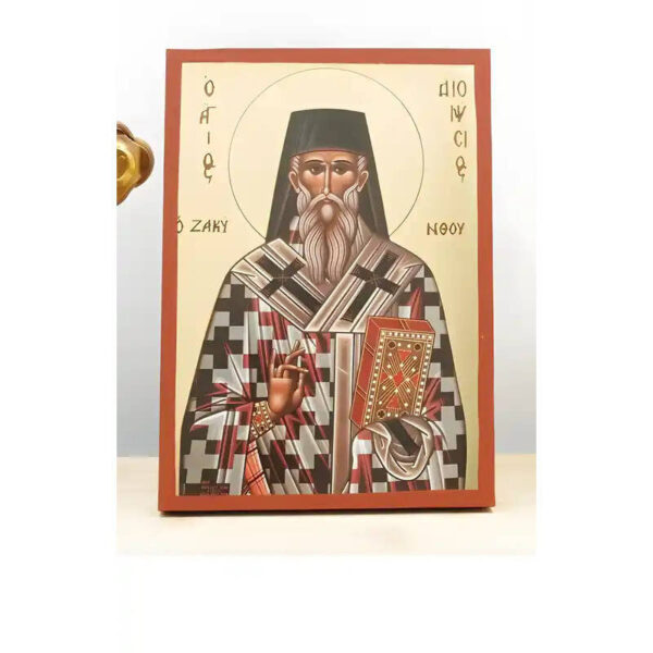 Εικόνα Ορθοδοξίας με περίγραμμα χρυσό σε ξύλο Φλαμουρίας με βάση Άγιος Διονύσιος Ζακύνθου, Ξύλινη Χειροποίητη Εικόνα με Ψηφιακή Εκτύπωση Ελληνικό Premium Βυζαντινού Στυλ Κρεμαστό τοίχου Θρησκευτικό Θέμα Χειροποίητη Ελληνορθόδοξη εικόνα του Ιησού Χριστού, Κρεμαστή πλάκα βυζαντινής τέχνης, χριστιανική τέχνη 45×35 cm (17,7 x 13,8 ίντσες) INTRAEK-342111148