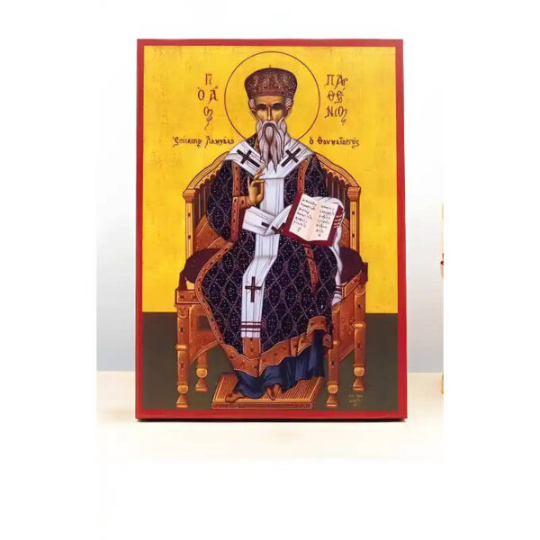 Εικόνα Ορθοδοξίας με περίγραμμα χρυσό σε ξύλο Φλαμουρίας με βάση Άγιος Παρθένιος Επίσκοπος Λαμψάκου, Ξύλινη Χειροποίητη Εικόνα Ελληνικού Βυζαντινού Στυλ Κρεμαστή σε ξύλινη πλάκα Θρησκευτικό Θέμα Χειροποίητη Ελληνορθόδοξη εικόνα του Ιησού Χριστού, Κρεμαστή πλάκα βυζαντινής τέχνης, χριστιανική τέχνη 45×35 cm (17,7 x 13,8 ίντσες) INTRAEK-342111102