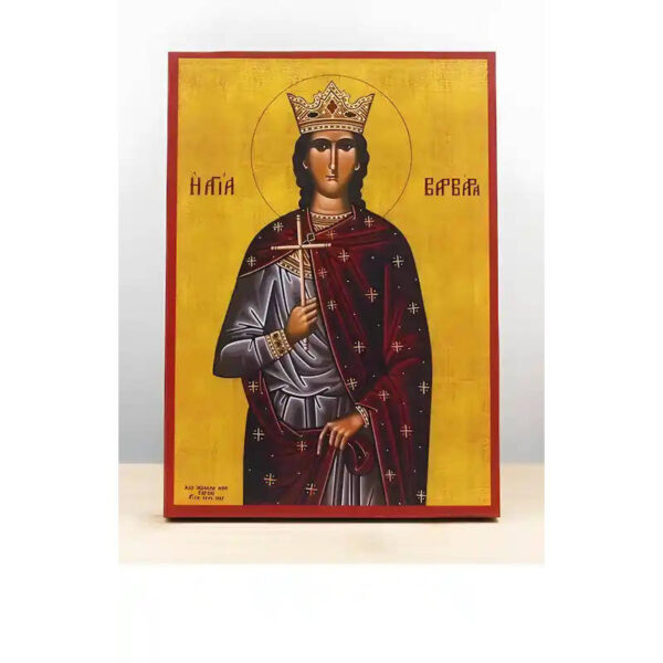 Εικόνα Ορθοδοξίας με περίγραμμα χρυσό σε ξύλο Φλαμουρίας με βάση Αγία Βαρβάρα η Μεγαλομάρτυς, Ξύλινη Χειροποίητη Εικόνα Ελληνικού Premium Βυζαντινού Στυλ Κρεμαστή σε ξύλινη πλάκα Θρησκευτικό θέμα Χειροποίητη Ελληνορθόδοξη εικόνα του Ιησού Χριστού, Κρεμαστή πλάκα βυζαντινής τέχνης, χριστιανική τέχνη 45×35 cm (17,7 x 13,8 ίντσες) INTRAEK-342111088