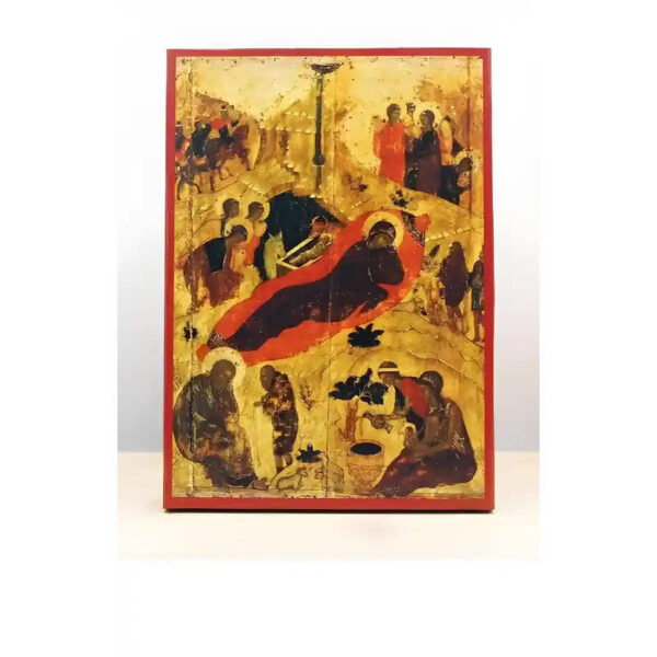 Εικόνα Ορθοδοξίας με περίγραμμα χρυσό σε ξύλο Φλαμουρίας με βάση Genesis of Jesus Christ Old Style, Ξύλινη Χειροποίητη Εικόνα Ελληνικού Premium Βυζαντινού Στυλ Κρεμασμένο σε ξύλινη πλάκα Ορθόδοξο Θρησκευτικό Θέμα Χειροποίητη Ελληνορθόδοξη εικόνα του Ιησού Χριστού, Κρεμαστή πλάκα βυζαντινής τέχνης, χριστιανική τέχνη 45×35 cm (17,7 x 13,8 ίντσες) INTRAEK-342111033