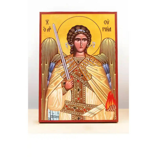 Εικόνα Ορθοδοξίας με περίγραμμα χρυσό σε ξύλο Φλαμουρίας με βάση Αρχάγγελος Ουριήλ, Ξύλινη Χειροποίητη Εικόνα Ελληνικού Premium Βυζαντινού Στυλ Κρεμασμένο σε ξύλινη πλάκα Θρησκευτικό θέμα Χειροποίητη Ελληνορθόδοξη εικόνα του Ιησού Χριστού, Κρεμαστή πλάκα βυζαντινής τέχνης, χριστιανική τέχνη 45×35 cm (17,7 x 13,8 ίντσες) INTRAEK-342110918