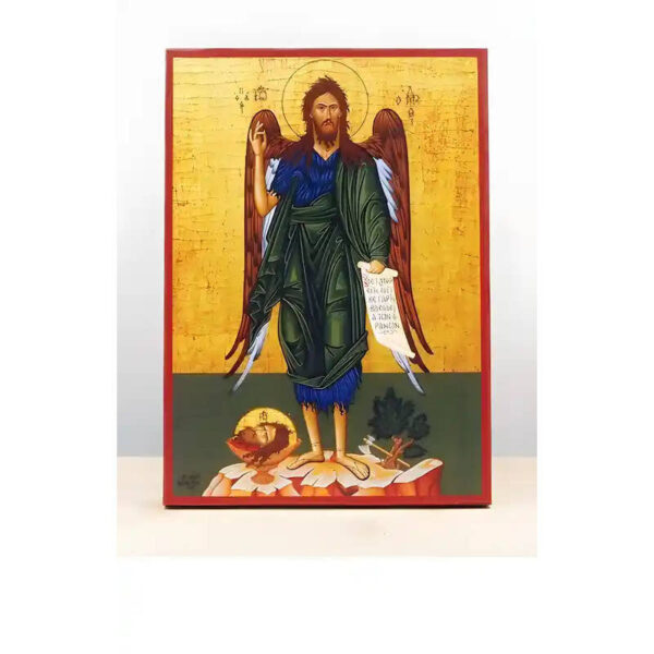 Εικόνα Ορθοδοξίας με περίγραμμα χρυσό σε ξύλο Φλαμουρίας με βάση Άγιος Ιωάννης ο Βαπτιστής Άγγελος της Ερήμου, Ξύλινη Χειροποίητη Εικόνα Ελληνικού Premium Βυζαντινού Στυλ Κρεμασμένο σε ξύλινη πλάκα Θρησκευτικό θέμα Χειροποίητη Ελληνορθόδοξη εικόνα του Ιησού Χριστού, Κρεμαστή πλάκα βυζαντινής τέχνης, χριστιανική τέχνη 45×35 cm (17,7 x 13,8 ίντσες) INTRAEK-342110809