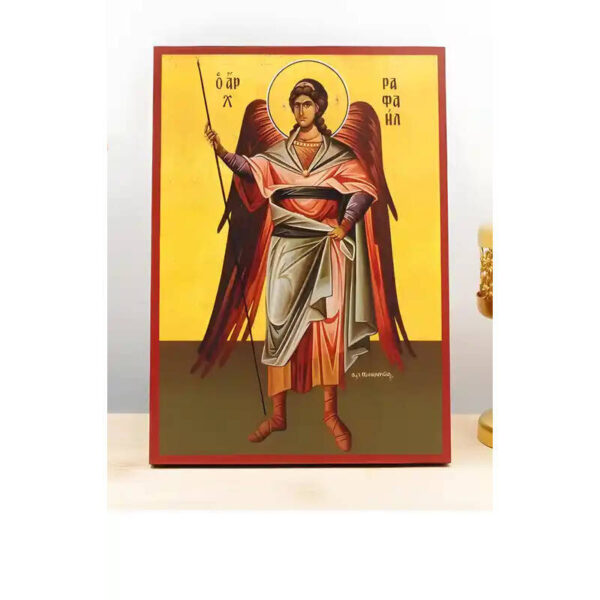 Εικόνα Ορθοδοξίας με περίγραμμα χρυσό σε ξύλο Φλαμουρίας με βάση Αρχάγγελος Ραφαήλ Ολόσωμο, Ξύλινη Χειροποίητη Εικόνα Ελληνικού Premium Βυζαντινού Στυλ Κρεμασμένο σε ξύλινη πλάκα Θρησκευτικό θέμα Χειροποίητη Ελληνορθόδοξη εικόνα του Ιησού Χριστού, Κρεμαστή πλάκα βυζαντινής τέχνης, χριστιανική τέχνη 45×35 cm (17,7 x 13,8 ίντσες) INTRAEK-342110800
