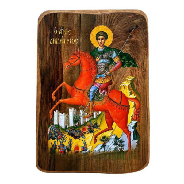 Εικόνα Ορθοδοξίας με περίγραμμα χρυσό σε ξύλο Φλαμουρίας με βάση Μπομπονιέρα βάπτισης Άγιος Δημήτριος Σετ 20 τεμαχίων, Εικόνα Βάπτισης, Χειροποίητη Βυζαντινή εικόνα Bomboniera 9x6cm, Χριστιανικό Δώρο Διάσταση 10×7 cm (3,9 x 2,8 ίντσες) INTRAEK-816724105